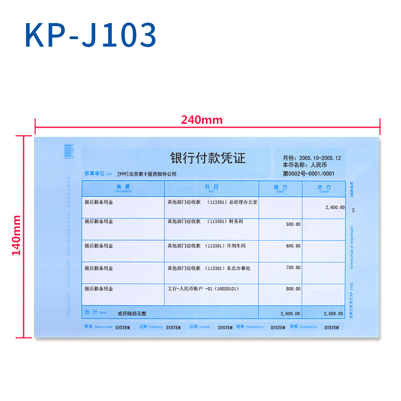• 西玛KP-J103 KD激光金额记账凭证 240*140mm 增票版凭证打印纸 500份/包 4包/箱
