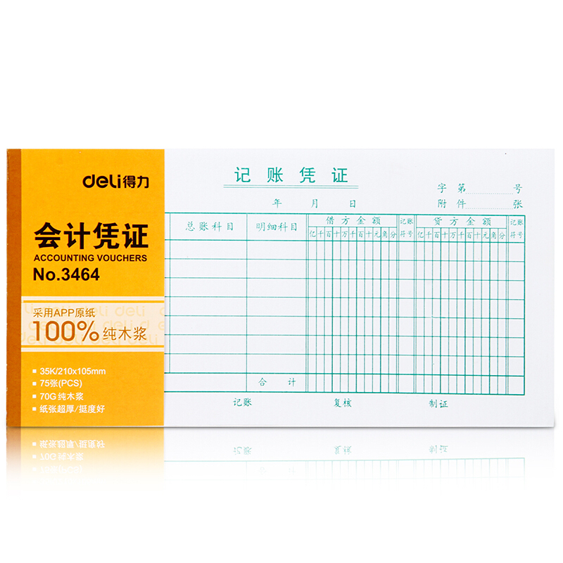 • 得力(deli)3464记账凭证 财务会计凭证单据收据 10本装