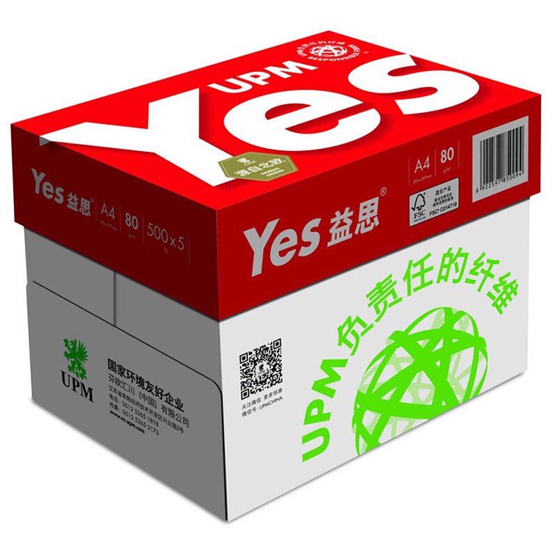 • UPM 红益思 80克 A4 复印纸 500张/包 5包/箱(高白)2500张