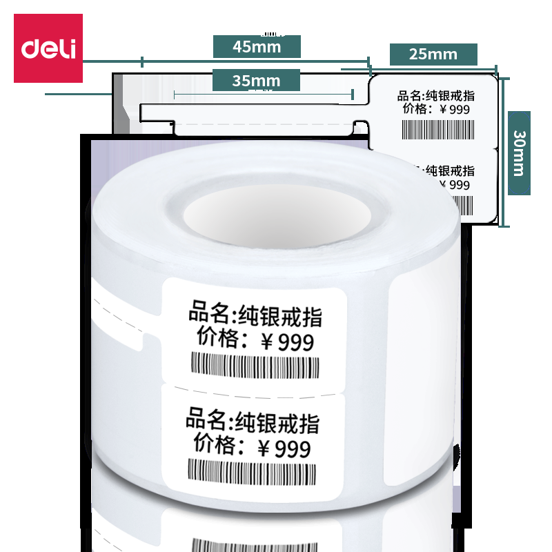 得力(deli)珠宝标签纸首饰银饰不干胶防水标签打印纸条码纸热敏纸 11887(30*25mm-100张)