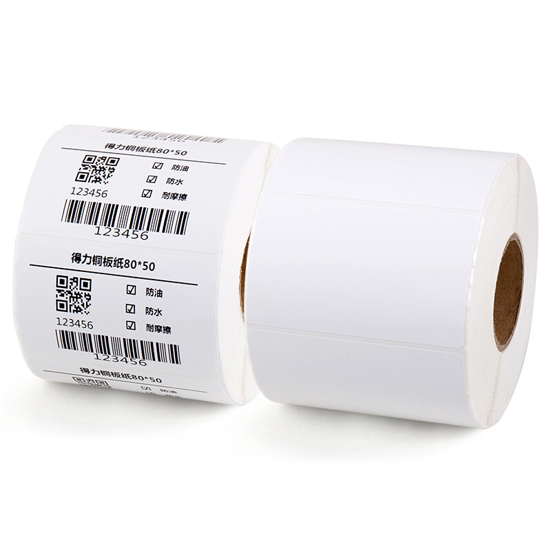 得力(deli)通用铜版纸不干胶标签纸/条码纸/打印贴纸 热转印打印纸 铜板卷纸空白贴纸 80*50mm 1000张/卷(11914)