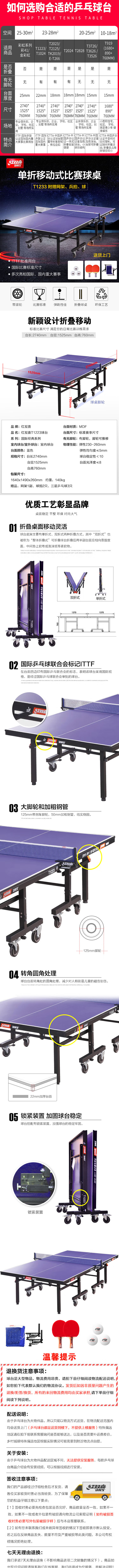 红双喜(DHS)乒乓球台折叠移动式专业比赛乒乓球桌T1223 含网架/球拍/三星球