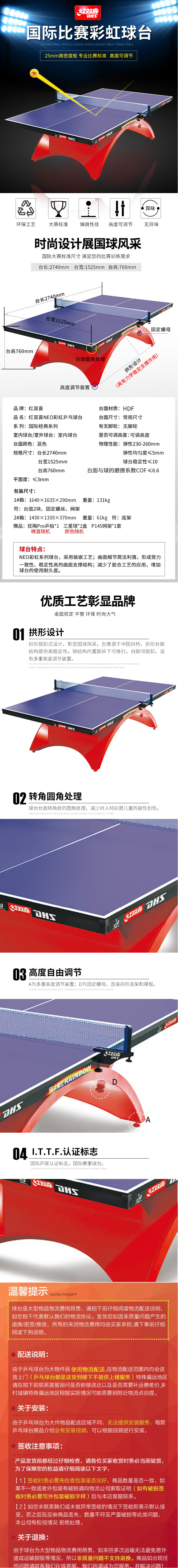 红双喜DHS 彩虹乒乓球桌室内乒乓球台比赛专业乒乓球案子TCH