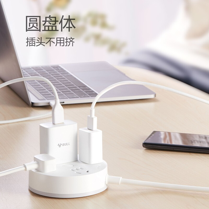 • 公牛(BULL)插座/插线板/插排/排插/拖线板 圆形插座4位总控 全长3米 GN-R2220