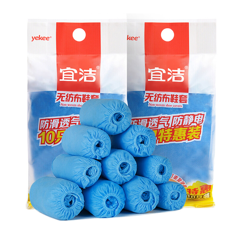 宜洁(yekee)鞋套无纺布脚套100只 防滑耐磨加厚 均码男女通用 蓝色100只