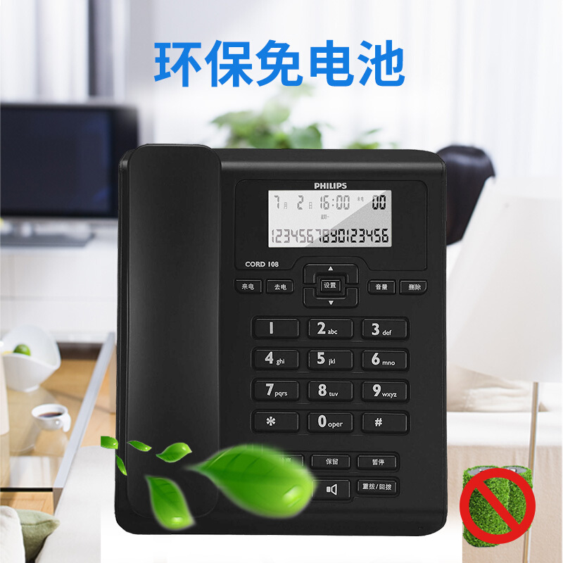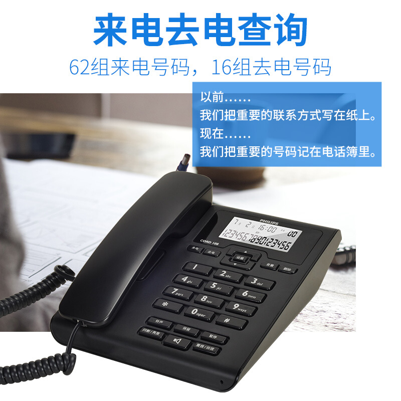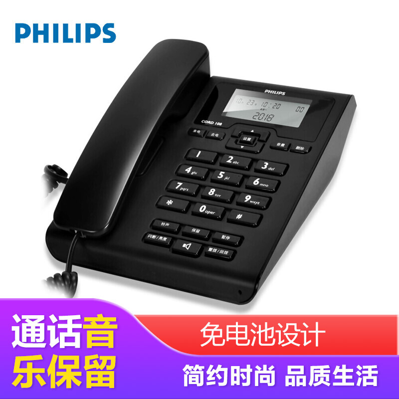 • 飞利浦(PHILIPS)CORD108 电话机座机 固定电话 办公家用 免电池 来电显示 免提通话
