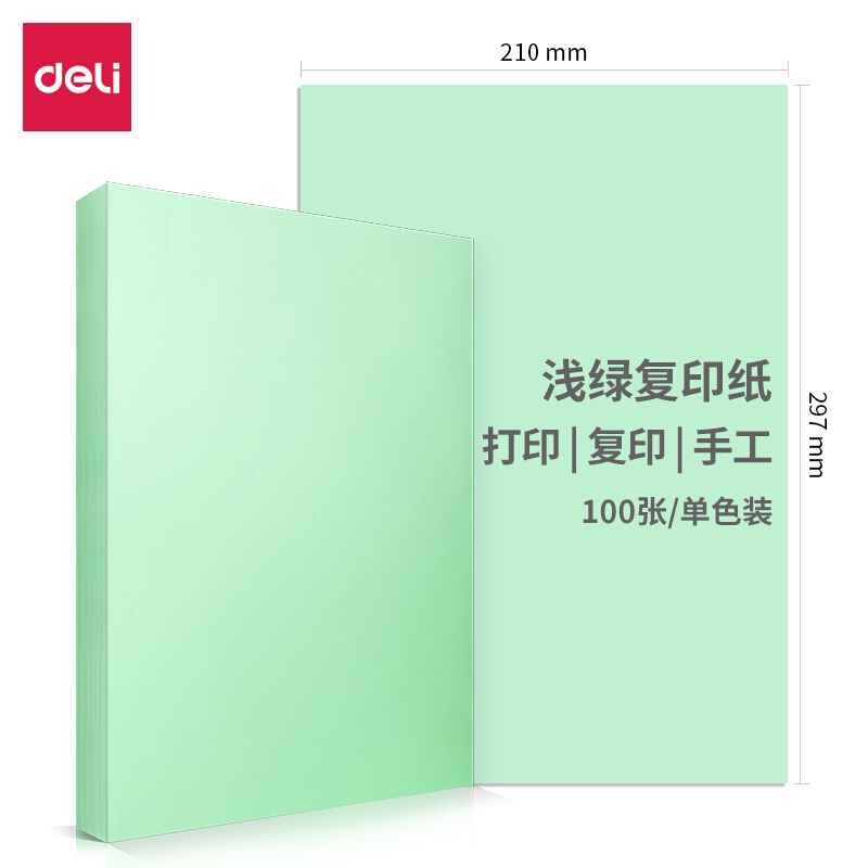 • 得力A4 浅绿色复印纸 彩色打印纸 彩纸 80g卡纸 100张/包 7757