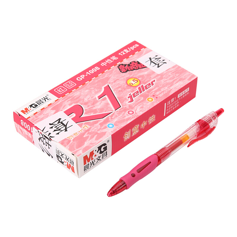 • 晨光GP-1008 红色中性签字笔 0.5mm 弹头按动医生处方笔