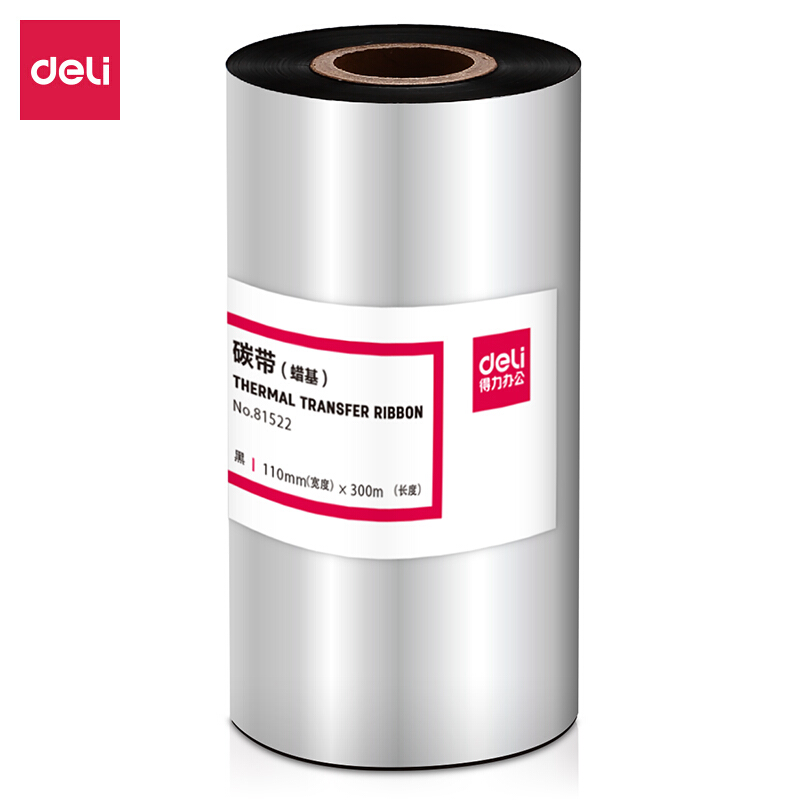 • 得力(deli)110mm*300m热转印条码机标签机蜡基碳带81522(单卷装)