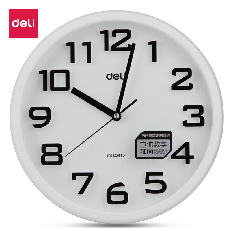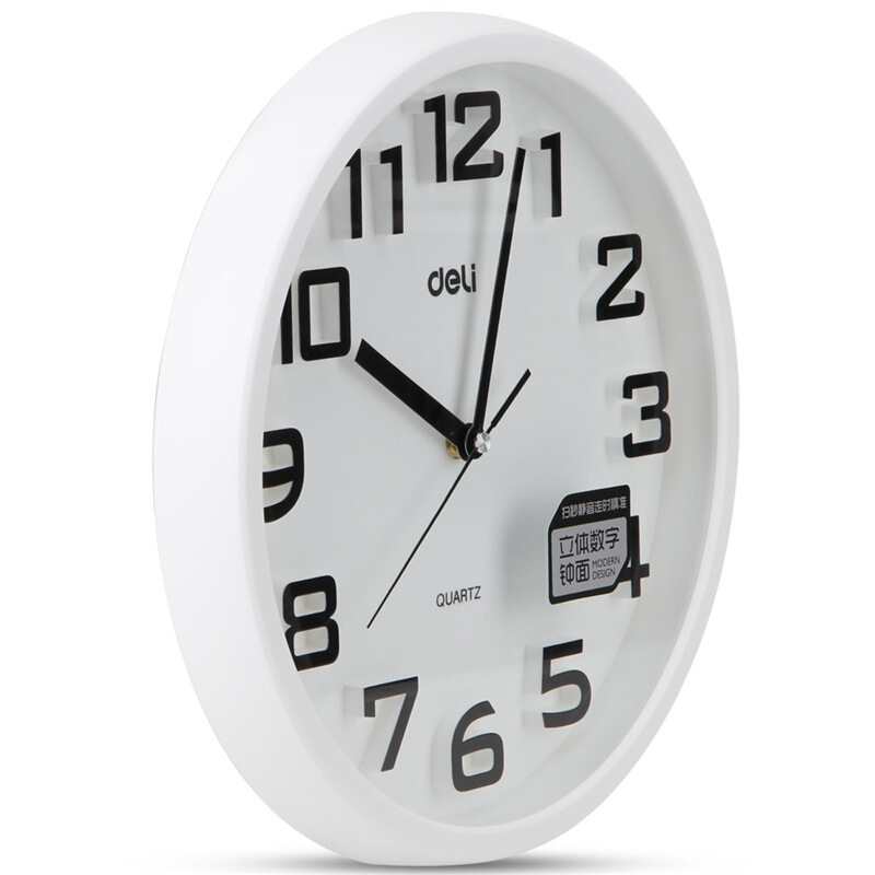 得力(deli)φ33cm时尚炫彩办公家居挂钟 立体数字钟面圆形 8948白色