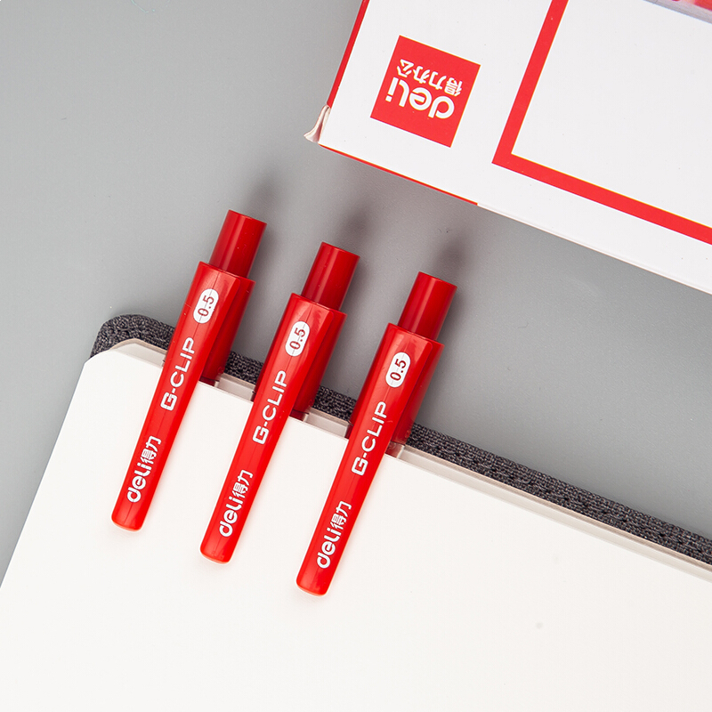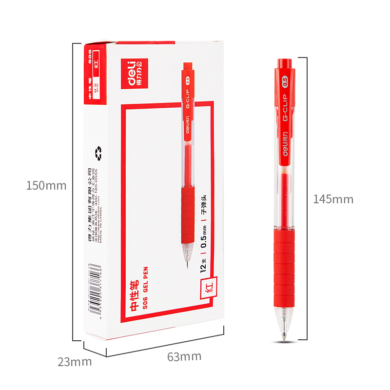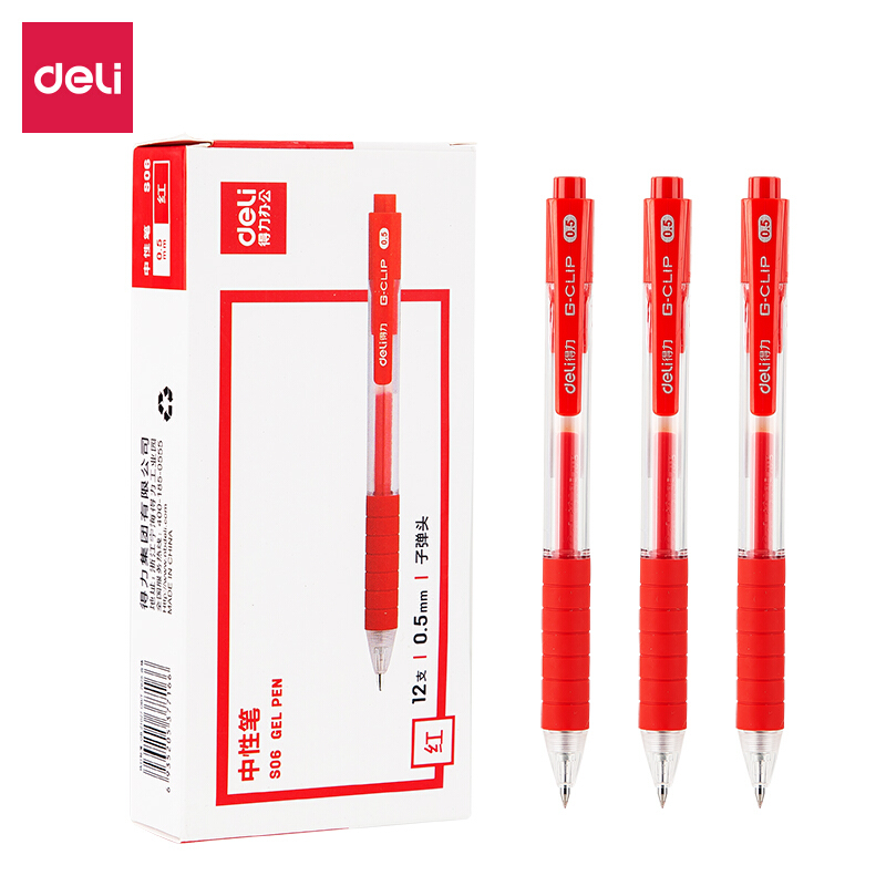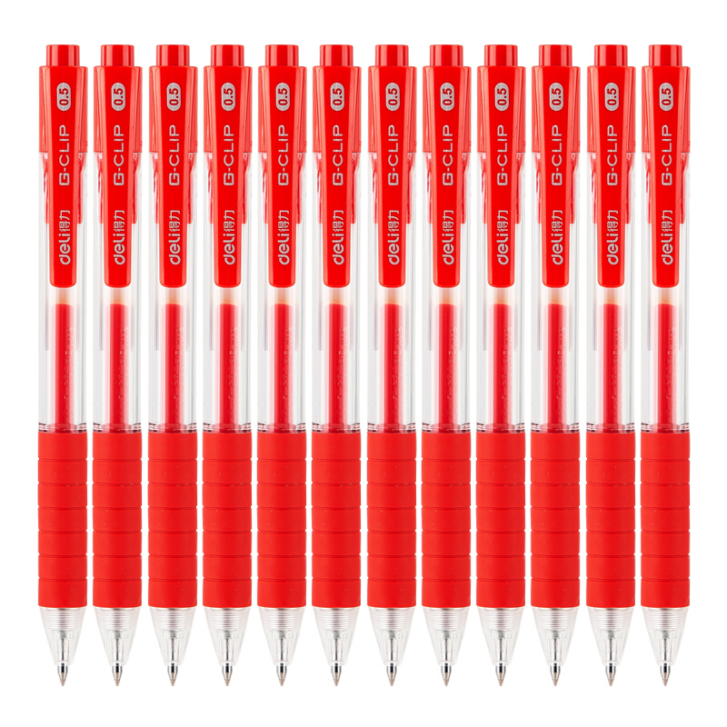 • 得力(deli)0.5mm按动中性笔水笔签字笔 红色12支/盒DL-S06