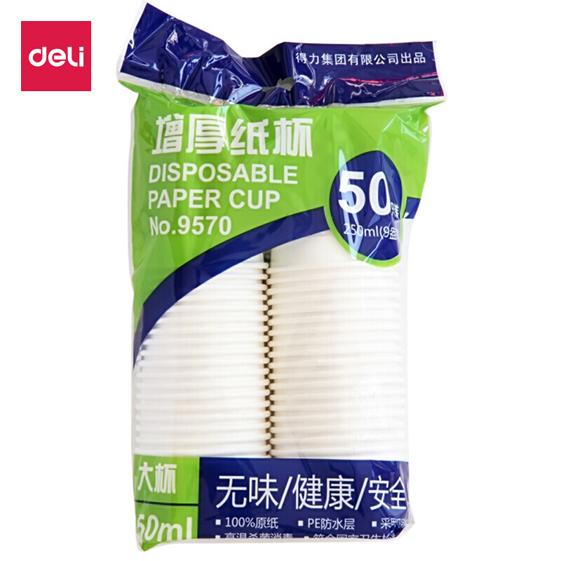 得力(deli)250ml(9盎司)加厚一次性水杯/纸杯 50只装 办公用品 9570