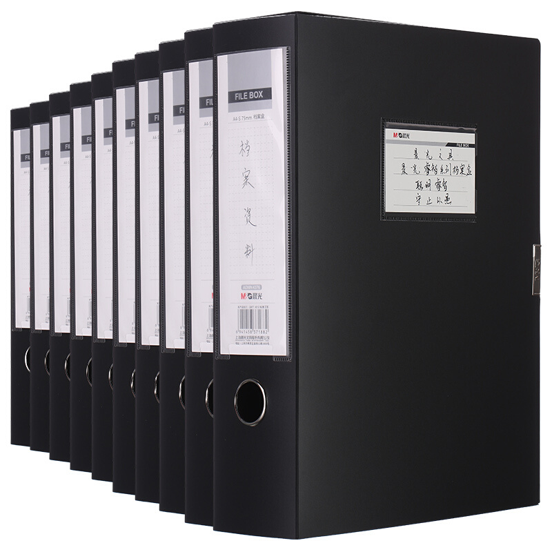 • 晨光ADMN4376 A4/75mm黑色粘扣档案盒 睿智系列资料盒文件整理收纳盒子