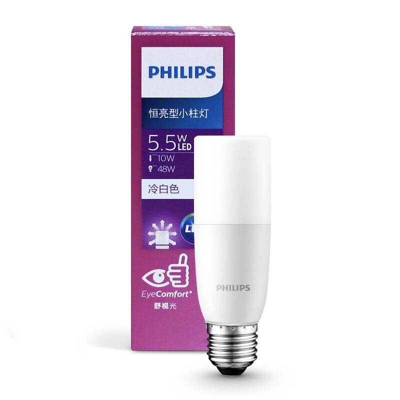 • 飞利浦LED小柱灯玉米灯泡节能灯光源E27螺口家用中性光led灯泡长灯泡6500K/4000K 5.5W/E27螺口/3000K黄光