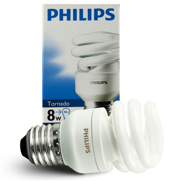 • 飞利浦节能灯泡 高亮螺旋节能光源灯泡 螺旋型 E27 8W 特惠单只装 白光