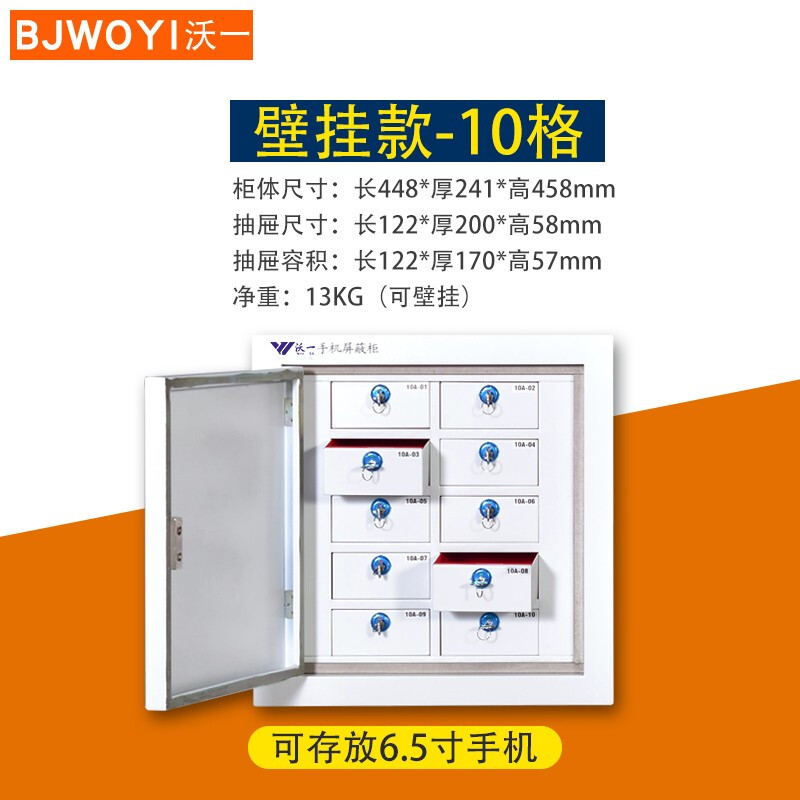 沃一10格 手机屏蔽柜保密局认证会议室手机柜屏蔽柜抽屉式手机存放屏蔽箱