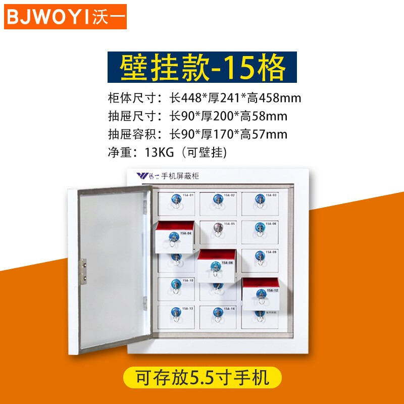 沃一 15格 手机屏蔽柜保密局认证会议室手机柜屏蔽柜抽屉式手机存放屏蔽