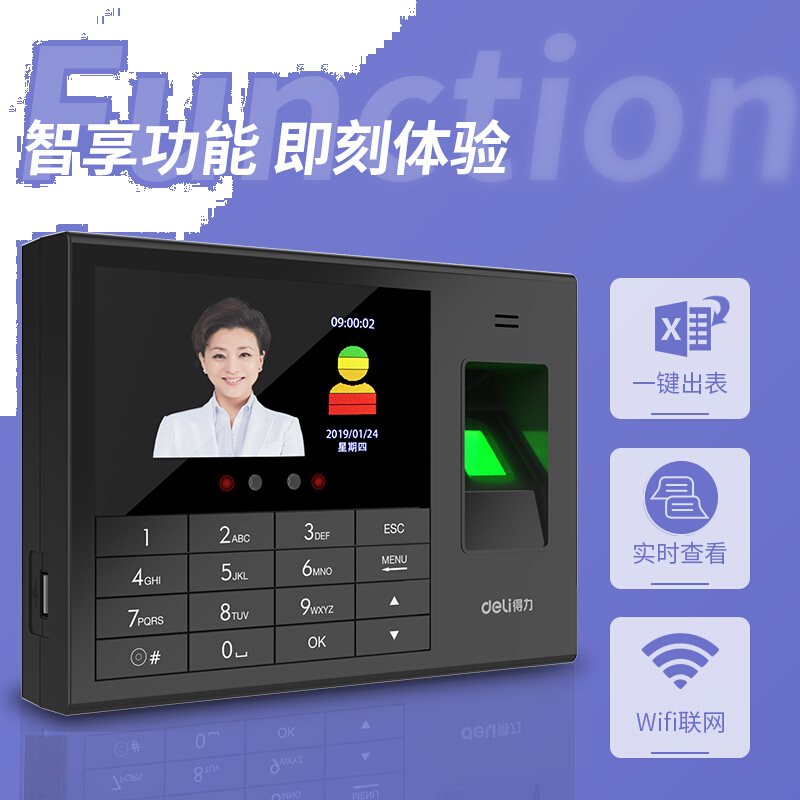 得力(deli)智能云考勤机 人脸/指纹/手机定位考勤wifi联网打卡机 APP远程管理 配备可定制考勤接口3765C