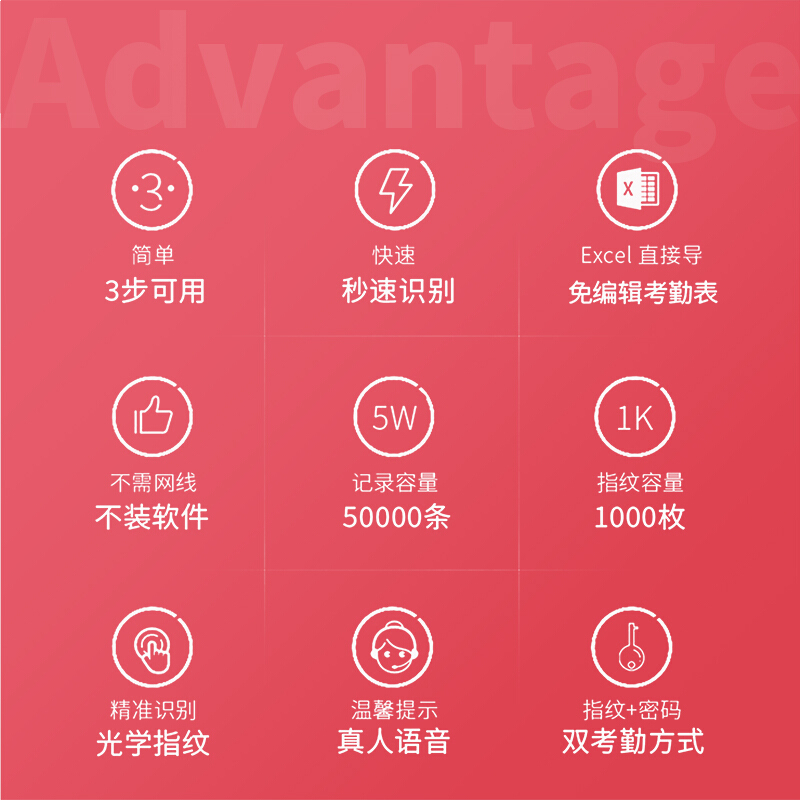 • 得力33113 智能指纹考勤机 免软件打卡机 自动生成报