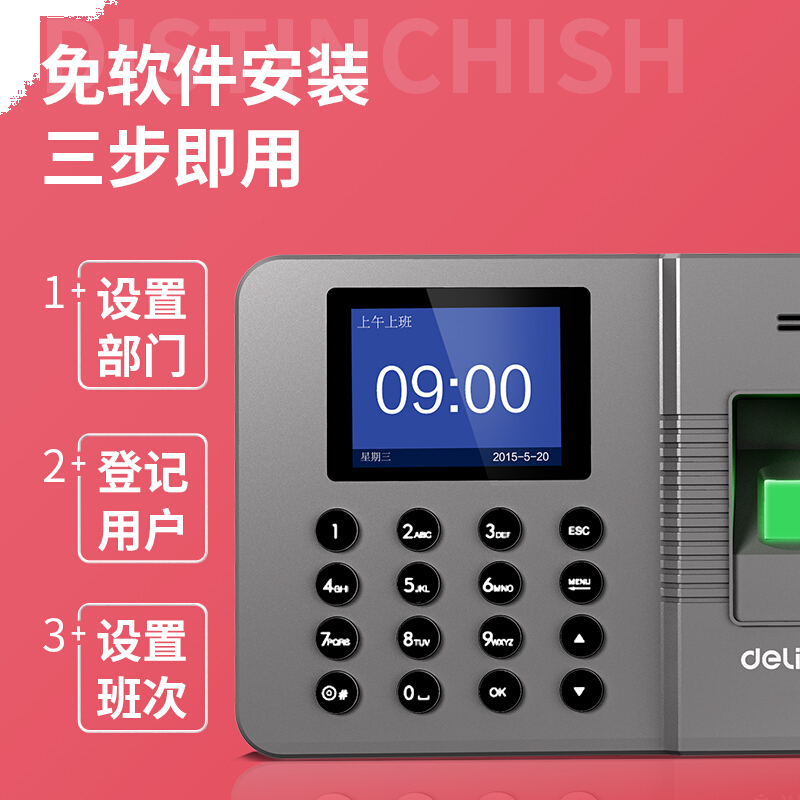 得力(deli)智能指纹考勤机 免软件打卡机 自动生成报表33113