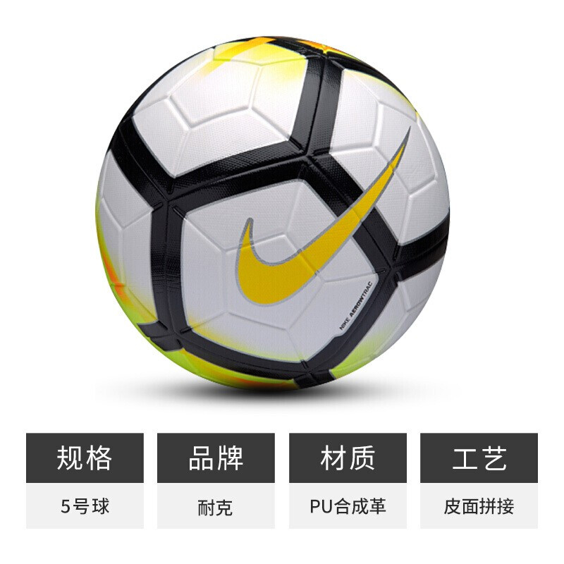 耐克(NIKE)足球 C罗5号成人训练 标准4号5号足球比赛 机缝PU耐磨 黄橙款 SC3154-100 送三件套 气针 气筒 网兜
