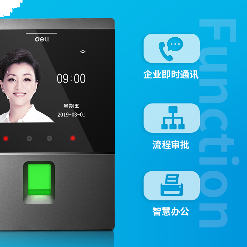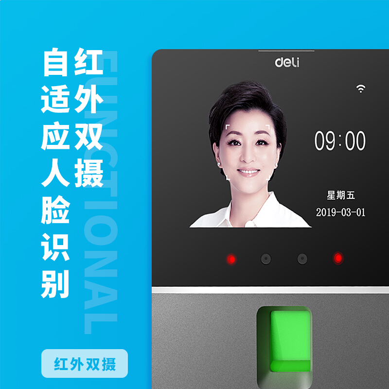得力(deli)智能云考勤机 人脸+指纹识别 手机定位考勤机wifi联网打卡机 远程管理 配备可定制考勤接口 D3