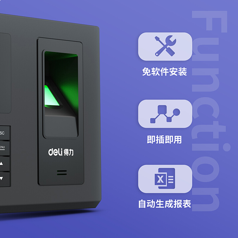 • 得力(deli)33368 智能脱机指纹考勤机 真人语音大容量打卡机 自动生成报表 操作简单