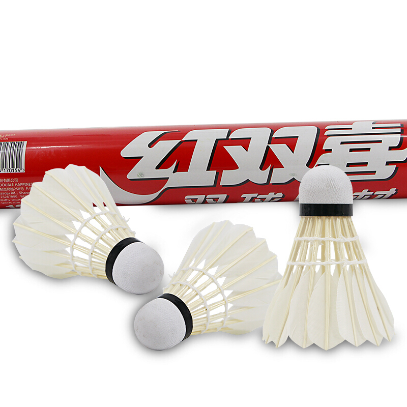 红双喜DHS 羽毛球比赛训练耐打复合软木鹅毛球E-EG12(12只装)
