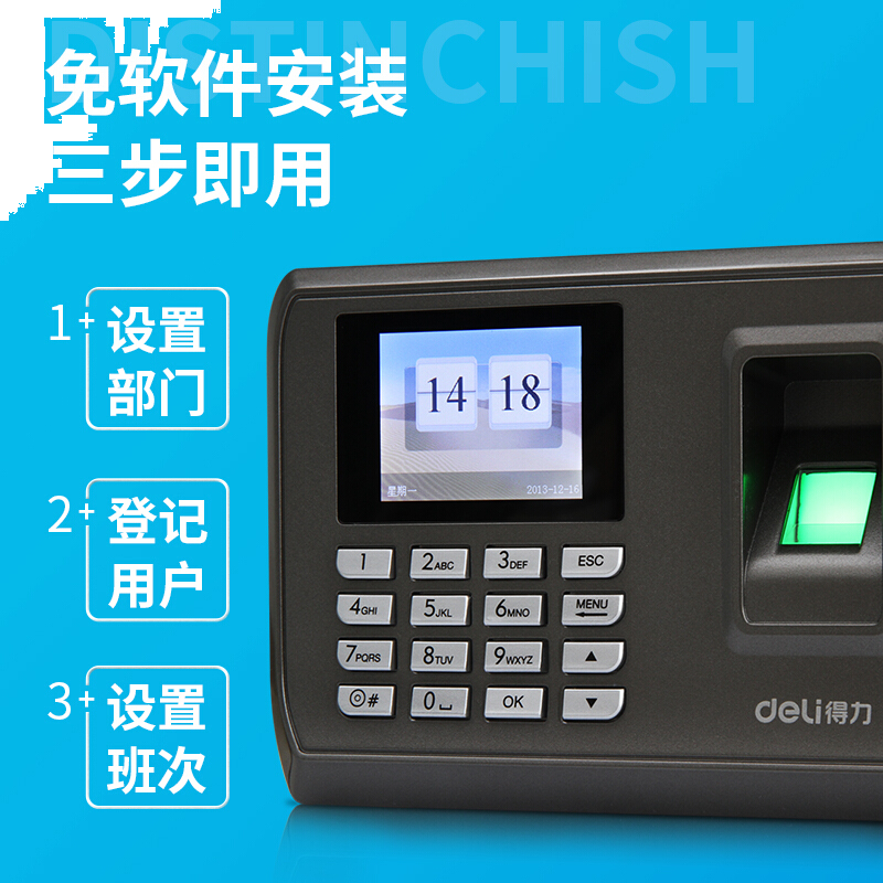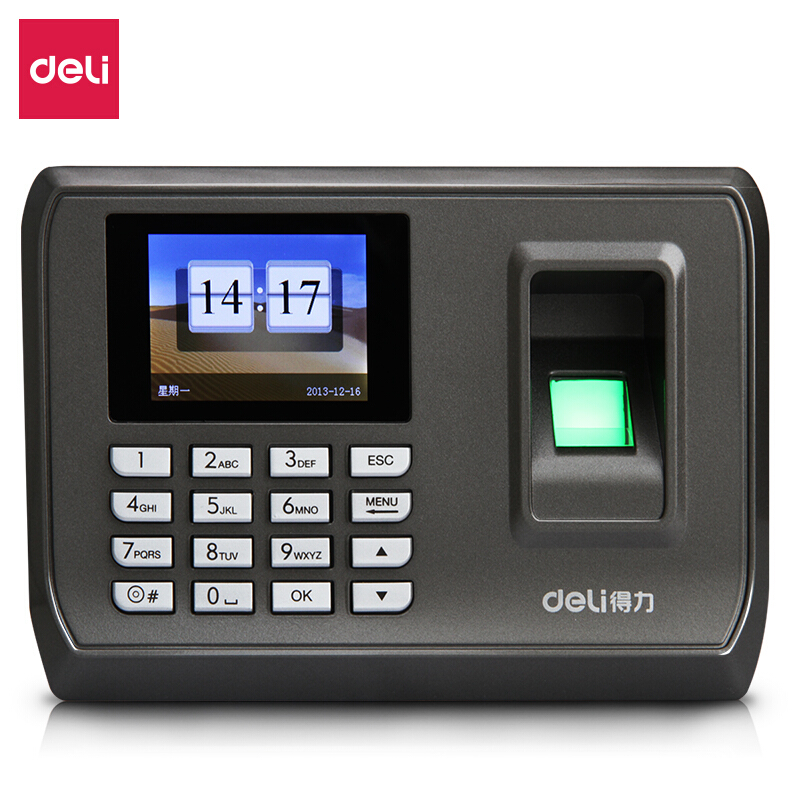 • 得力(deli) 33068 智能彩屏指纹考勤机 真人语音/脱机考勤
