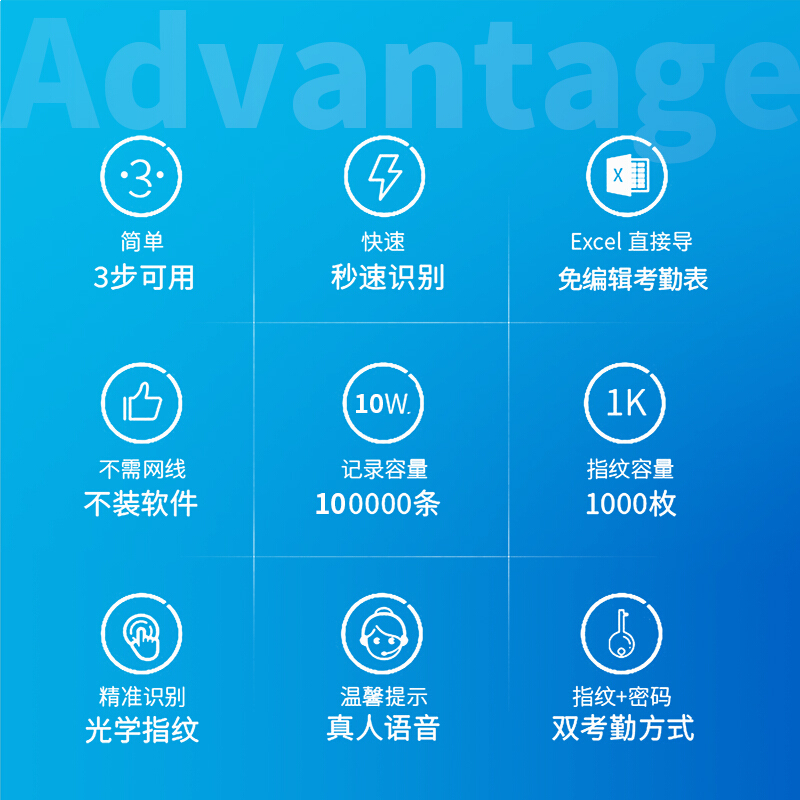得力(deli) 33068 智能彩屏指纹考勤机 真人语音/脱机考勤