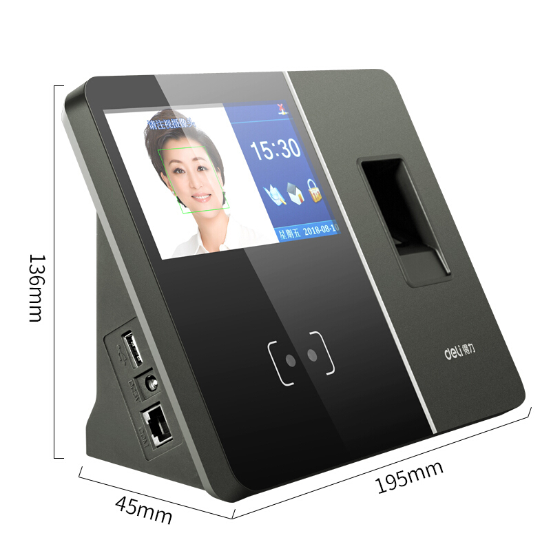 • 得力(deli)13750人脸指纹wifi上班打卡签到触屏考勤机上班签到一体机刷脸打卡机异地考勤打卡 深灰色