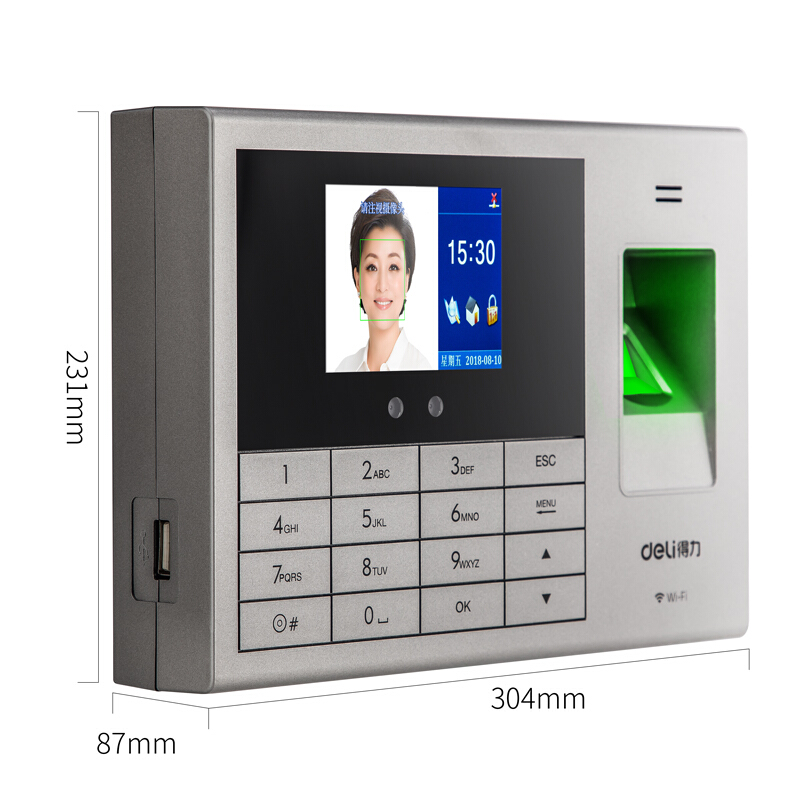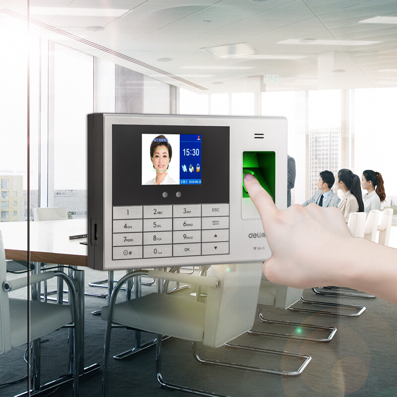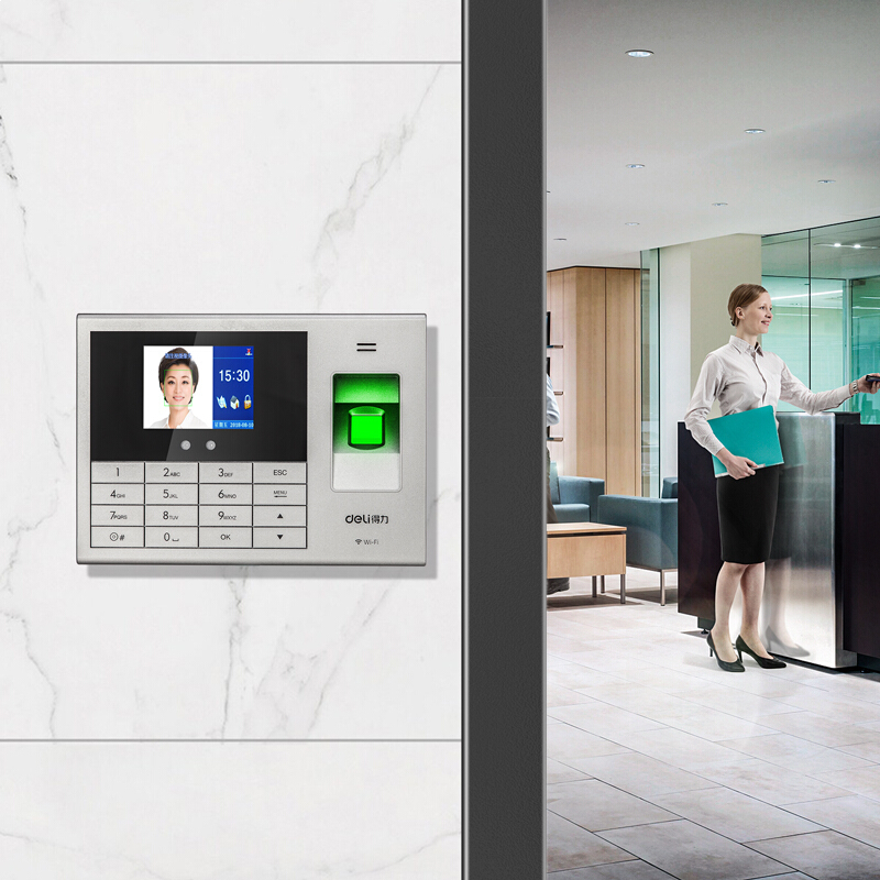 • 得力14050C 智能考勤机 指纹人脸一体机公司面部识别签到刷脸打卡机