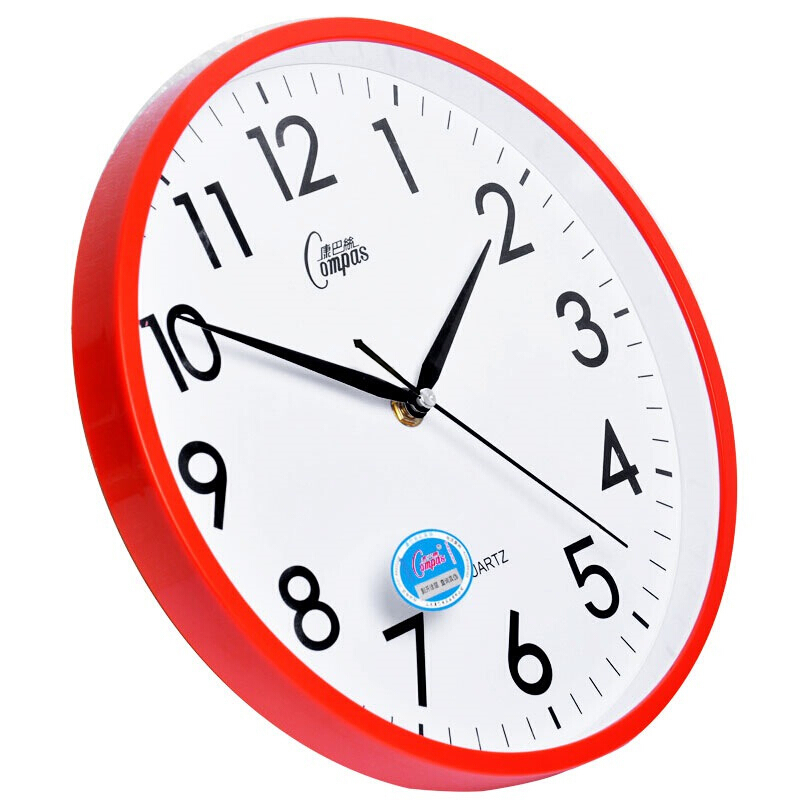 • 康巴丝(COMPAS)挂钟 创意简约钟表客厅石英钟表挂墙卧室时钟 c2855 红色