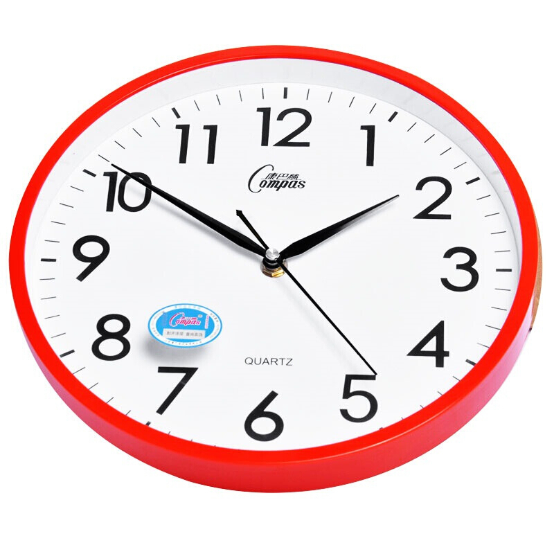 康巴丝(COMPAS)挂钟 创意简约钟表客厅静音石英钟表挂墙卧室时钟 c2855 红色