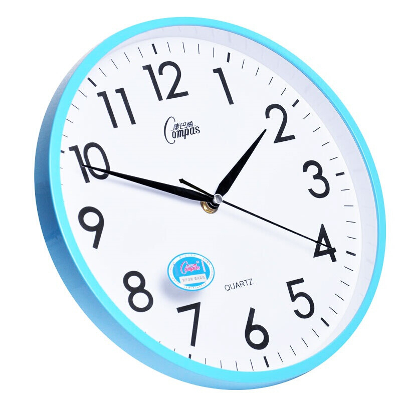 康巴丝(COMPAS)挂钟 创意简约钟表客厅静音石英钟表挂墙卧室时钟 c2855 蓝色