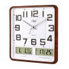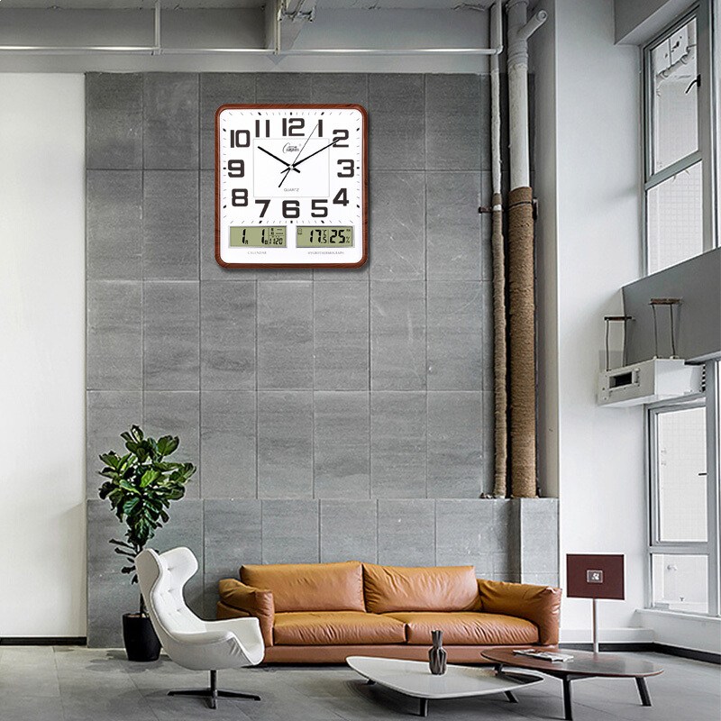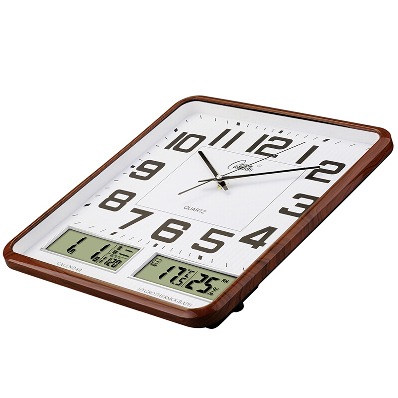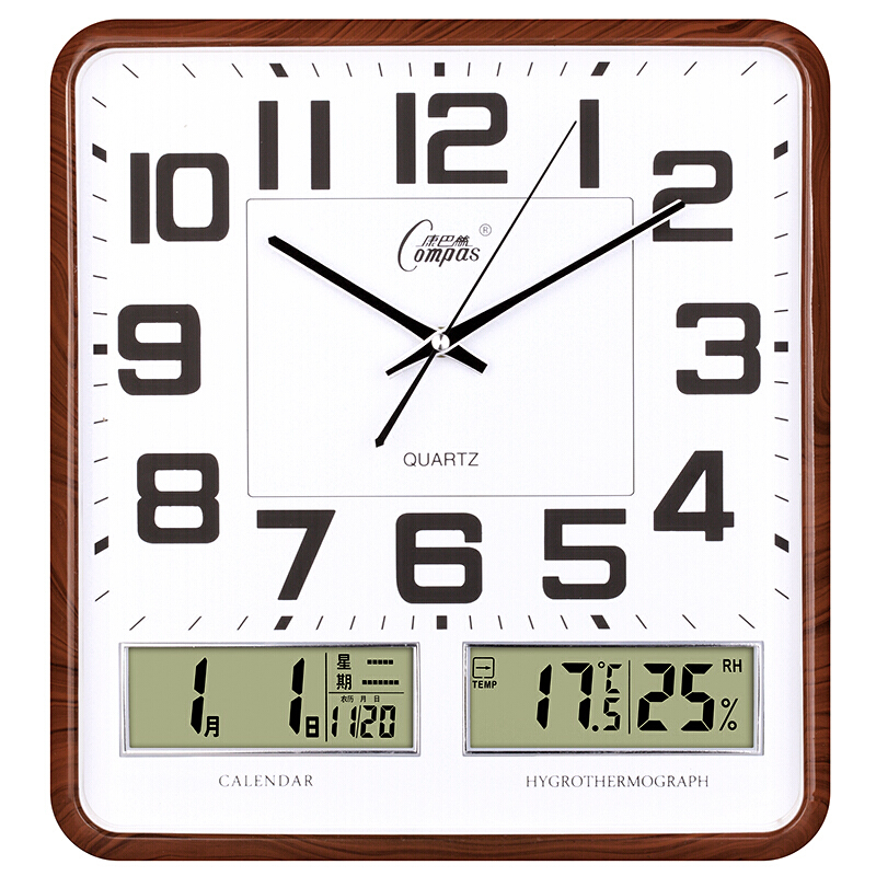 康巴丝(Compas)挂钟16英寸万年历温湿度钟表客厅时钟 简约方形日历石英钟表挂墙C2983 咖木