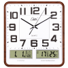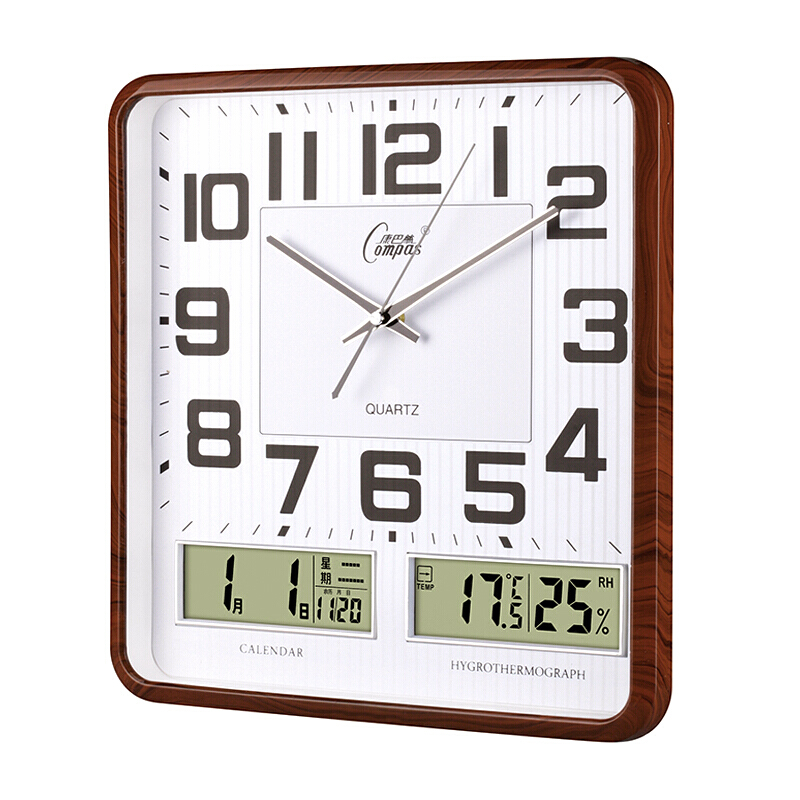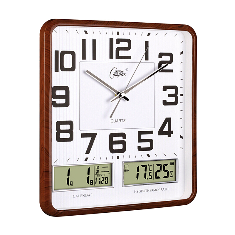 • 康巴丝(Compas)挂钟16英寸万年历温湿度钟表客厅时钟 简约方形日历石英钟表挂墙C2983 咖木