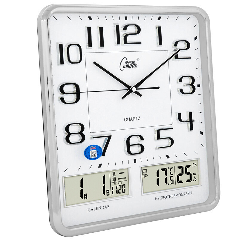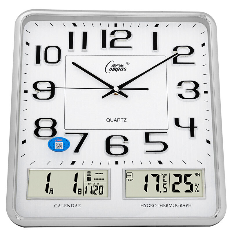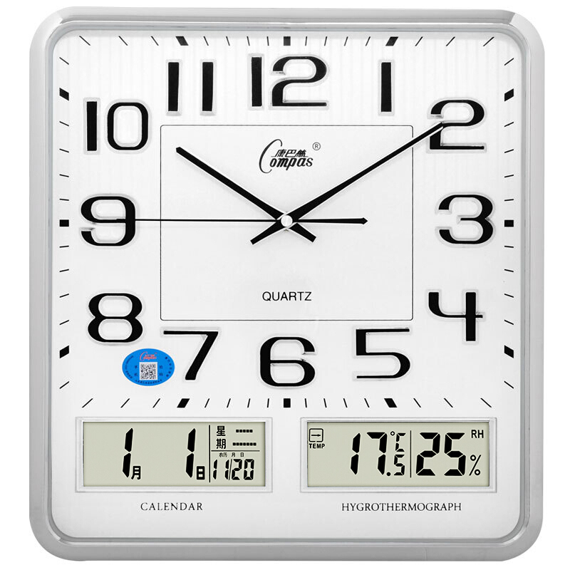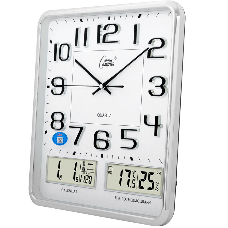 • 康巴丝(COMPAS)挂钟中式双日历时钟古典挂表电子客厅石英钟 2984 银色