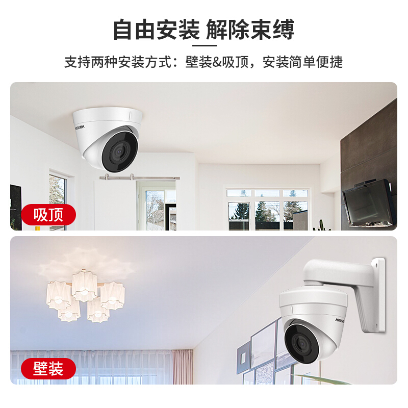 • 海康威视摄像头 200万监控 1080P网络高清监控摄像头 带POE红外夜视30米半球摄像机 2.8MM焦距T12