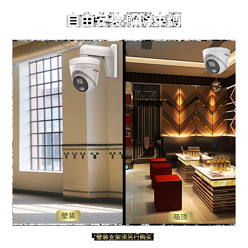 • 海康威视全彩摄像头400万高清红外夜视半球摄像机带POE监控摄像头 DS-2CD3347FWD-LS 4mm