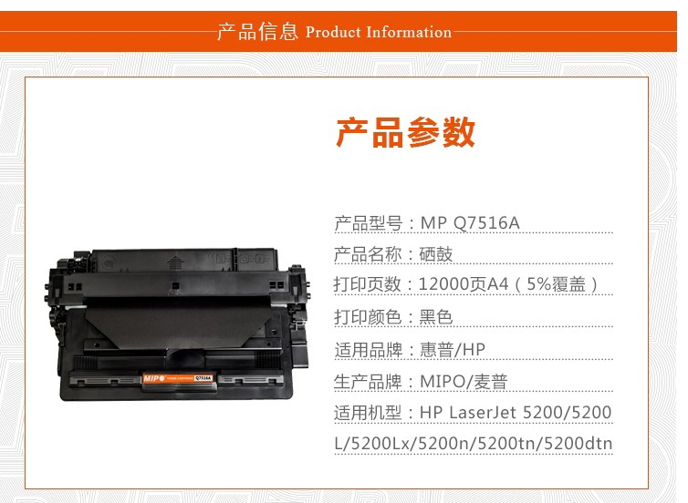 • 麦普16A Q7516A/CRG309 硒鼓 政企版 适用HP惠普 5200 5200L 5200N Q7516A/CRG309(12000页)