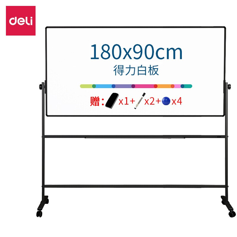 • 得力7884双面白板90*180cmH型支架可移动可翻转白板双面磁性办公板(赠白板擦 白板笔 磁钉)