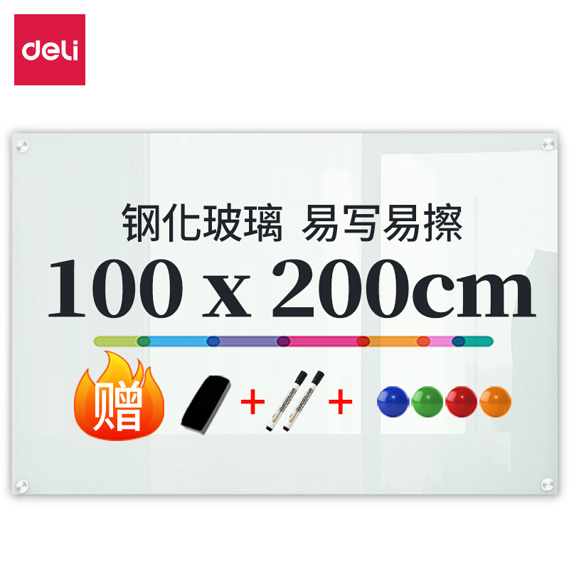 • 得力(deli)200*100cm磁性钢化玻璃白板 抗划书写顺畅会议写字板8741