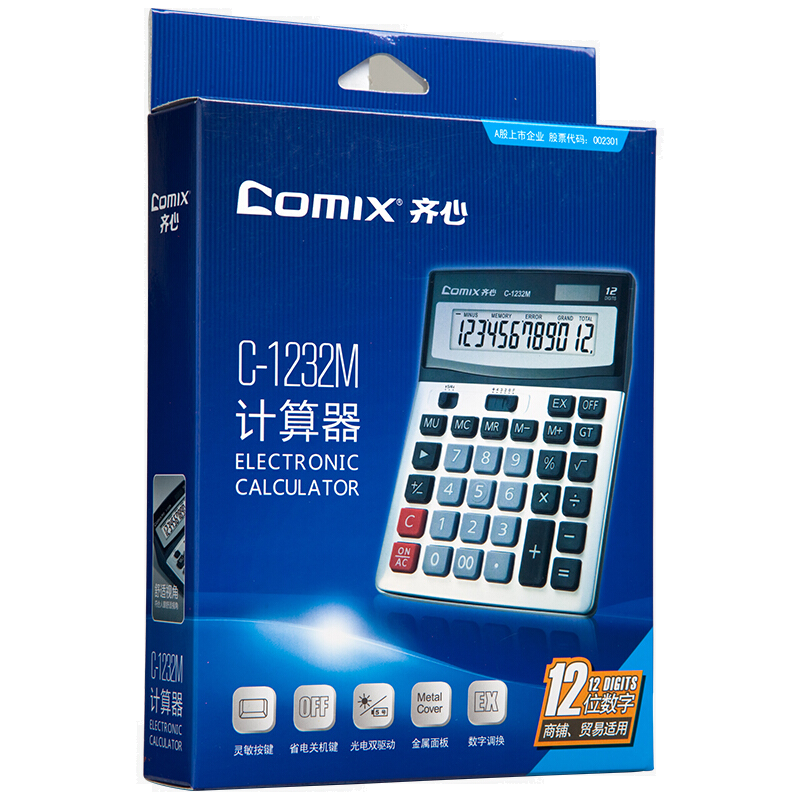 • 齐心(COMIX)12位大台办公计算器 新老包装随机发货 C-1232M