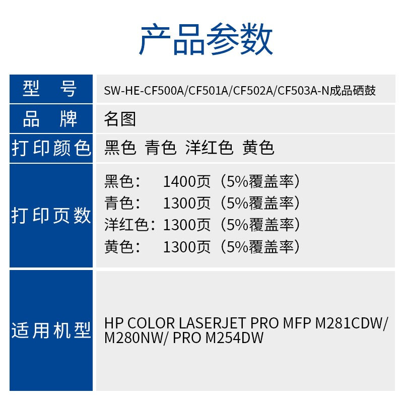 名图CF502A 黄色硒鼓 适用惠普 M254DW M254NW M281fdn M281fdw m280nw CF502AY/黄色