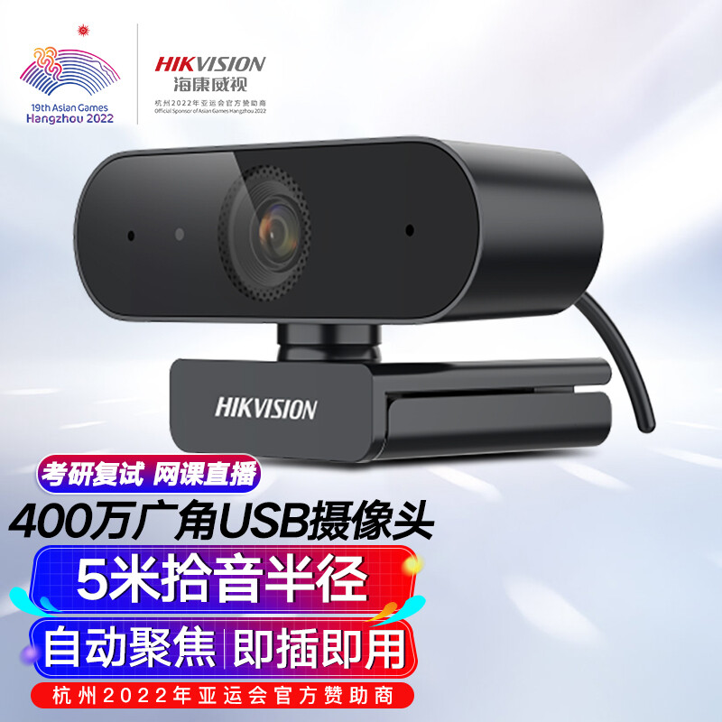 海康威视HIKVISION 电脑摄像头USB400万像素内置麦克风2K高清自动对焦款考研复试直播视频会议E14a