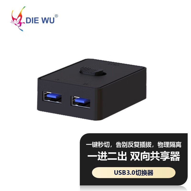 国产DIEWU USB打印机共享器切换器分线器一分拖二 二进一出双向切换两台电脑共用鼠标键盘U盘共享2口转换器 【USB3.0切换器】TXD183-共享器