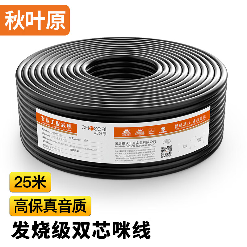 • 秋叶原(CHOSEAL)话筒卡农线 音频工程级双芯咪线 发烧级麦克风专用连接导线 128编网双屏蔽 25米 QS2805T25S