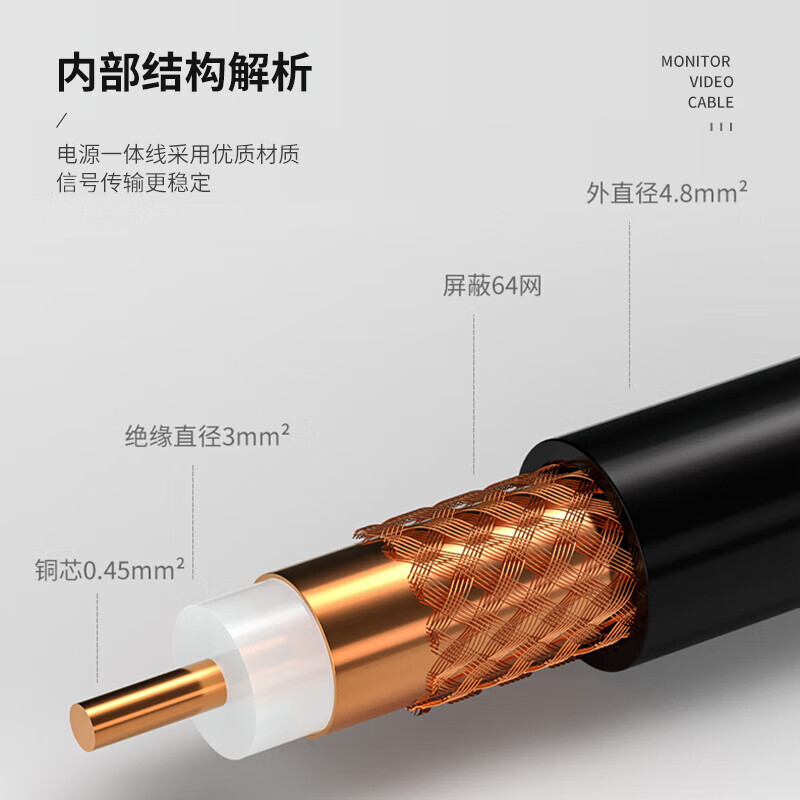 • 丰应子 监控视频线 SYV75-5同轴线高清线 无氧铜芯128编铜网100米 FYZ-SYV75-5-1