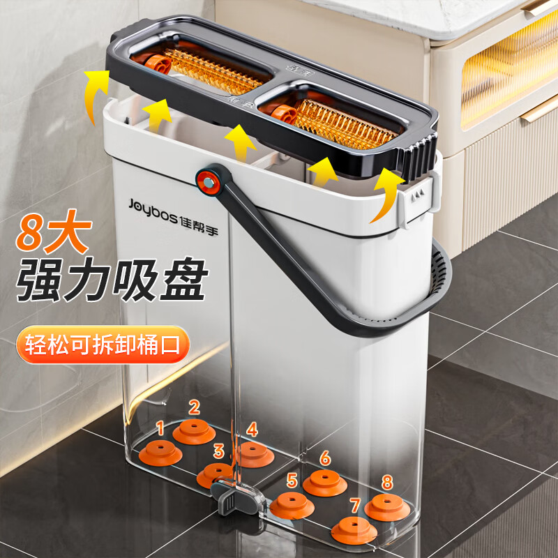 • 佳帮手平板刮刮乐拖把40cm杆长135cm共2块配布带桶洗刮一体免手洗神器